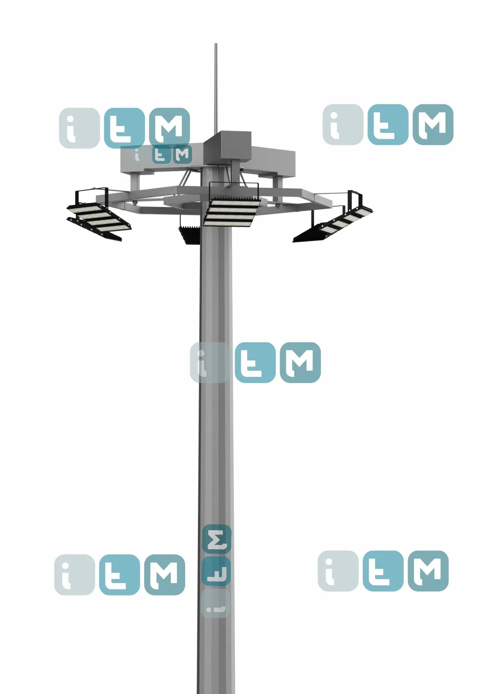 Для того, чтобы мачта освещения с мобильной короной выполняла свои функции, ее необходимо укомплектовать: