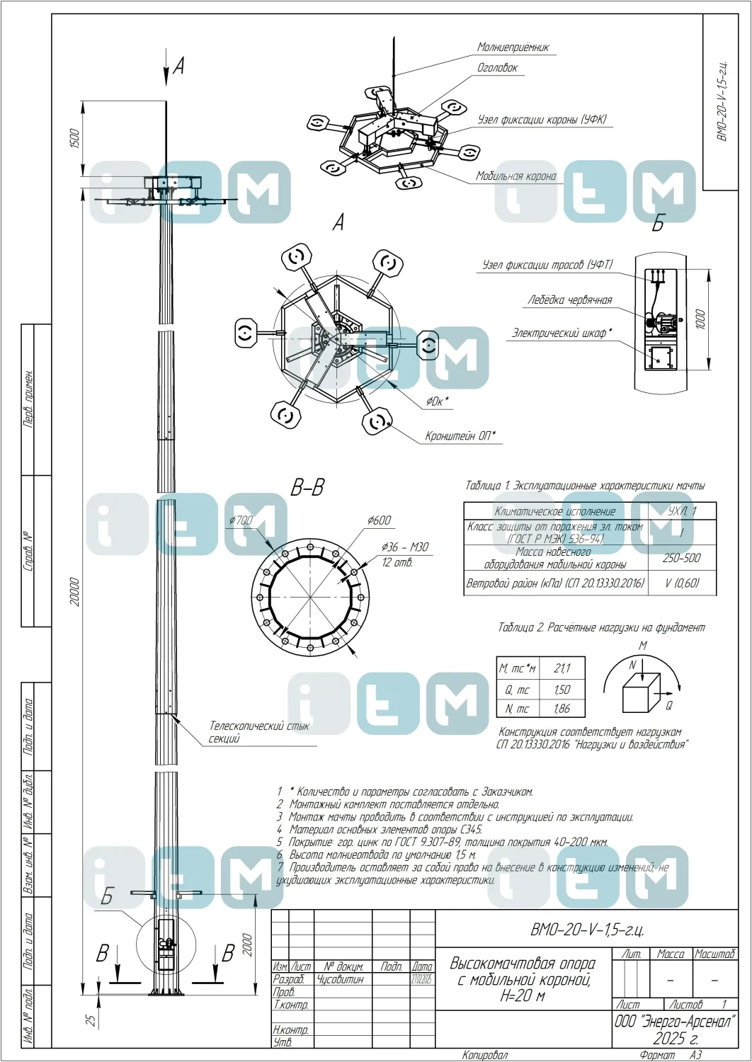 Особенности мачты ВМО-20-490/220 (МГФ-20-М)