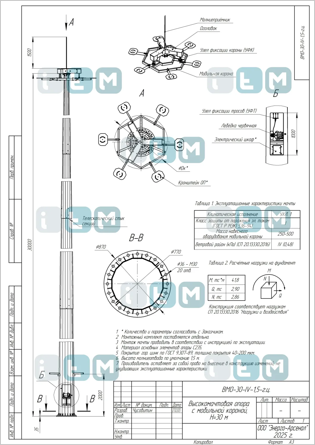 Особенности мачты ВМО-30-660/220 (МГФ-30-М)