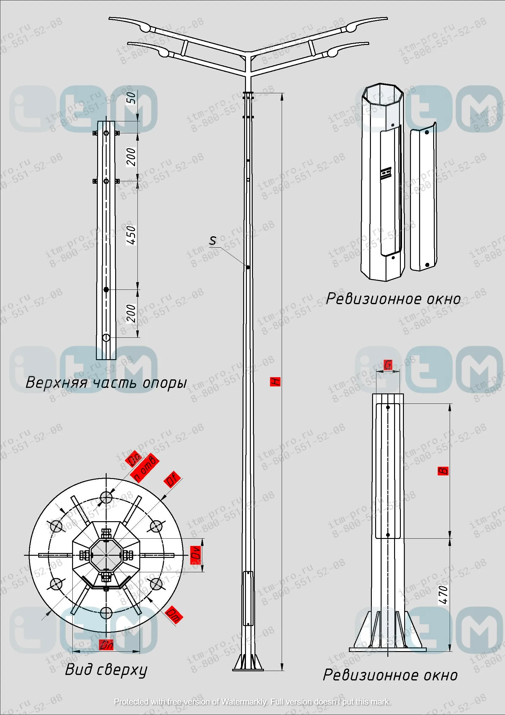 Опора СФГ-1000-10.0 – это стальной граненый столб, для организации освещения, его необходимо укомплектовать: