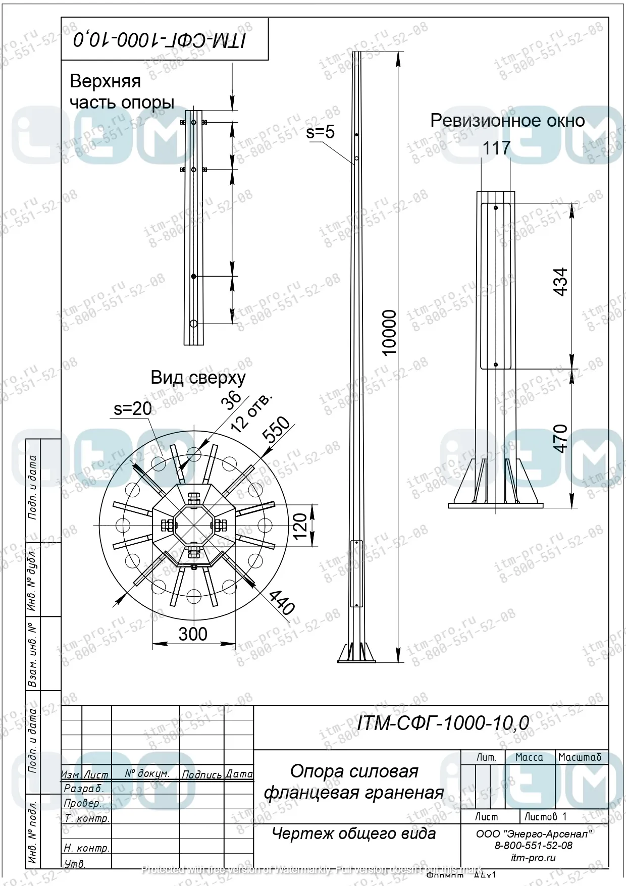 Граненая опора СФГ-1000-10.0 относится к силовому типу опор освещения - подвод питающего кабеля возможен как воздушным, так и подземным способом.